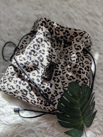 画像では、人気のレオパード柄巾着バッグと一緒にスタイリング。セット使いでさらにラグジュアリーな雰囲気に。